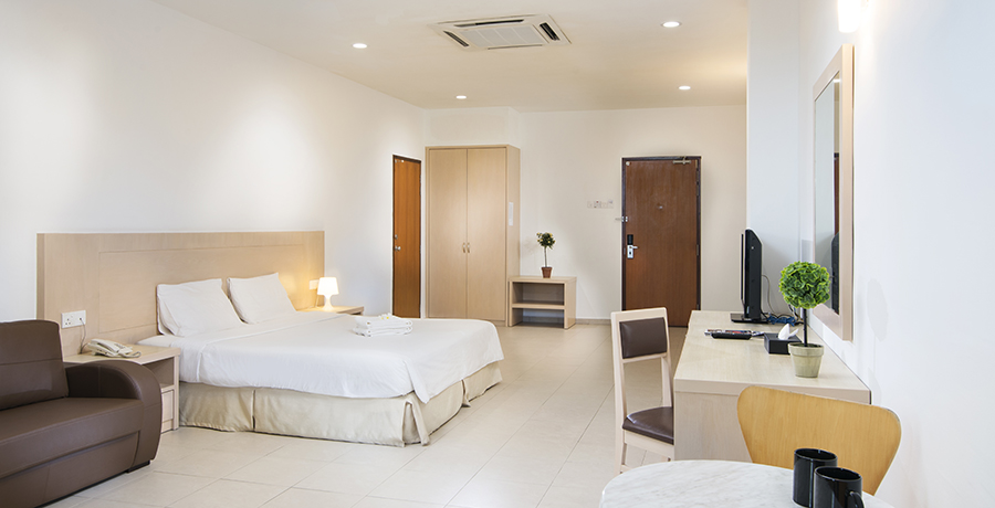 - Unit suite OYO Sukabumi yang luas dirancang dengan perabotan King Bed atau 2 x Full Size Bed (4 kaki)
